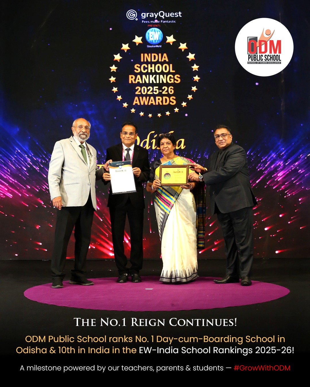 ODM Public School, Bhubaneswar, has achieved exceptional recognition in the Education World India School Rankings 2025-26, securing the first position in both Bhubaneswar and Odisha in the Day-cum-Boarding School category, while ranking tenth nationwide among schools across India.